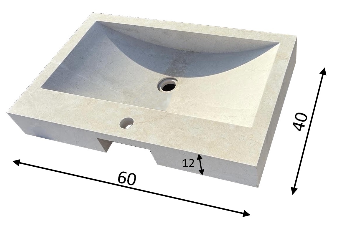 VASQUE EVIER LAVE-MAINS MOUGINS en pierre naturelle MANY avec trou robinetterie 60 x 40 x 12cm – Prix à l’unité