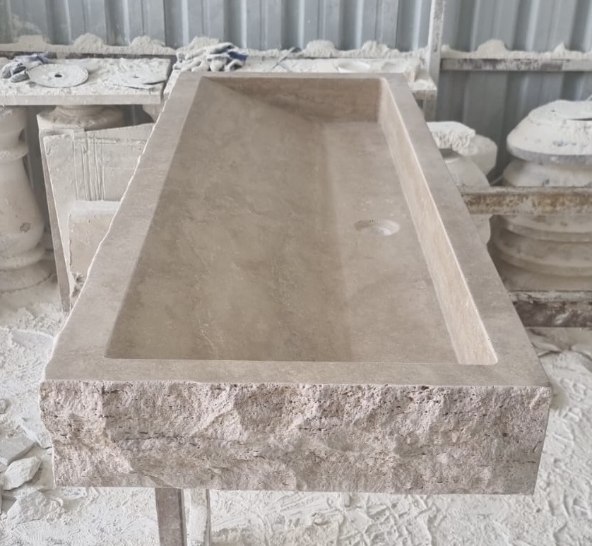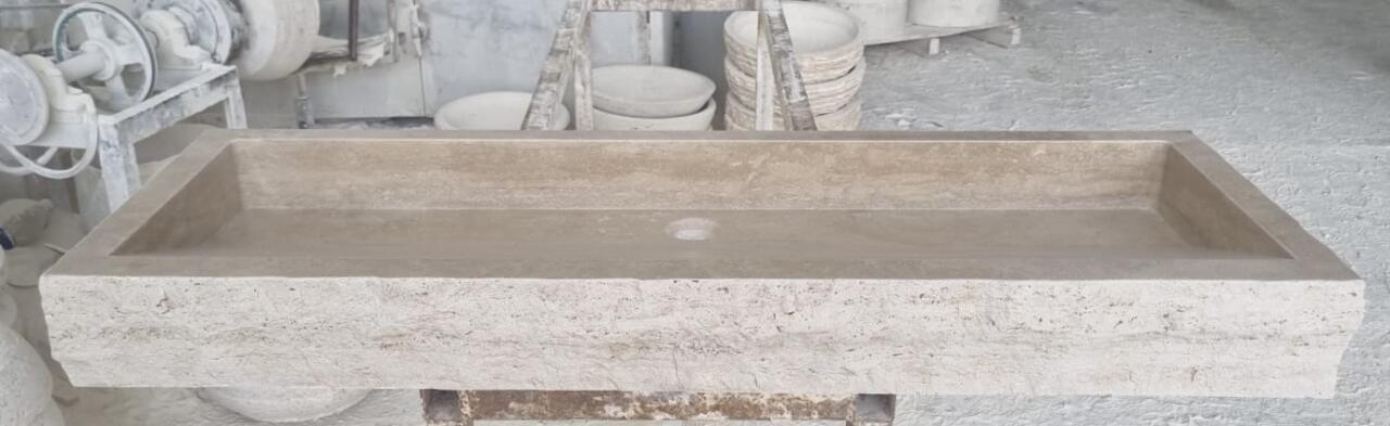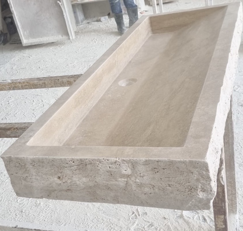 Vasque pierre Travertin Méga Lunel simple 120x45cm, épaisseur 12cm
