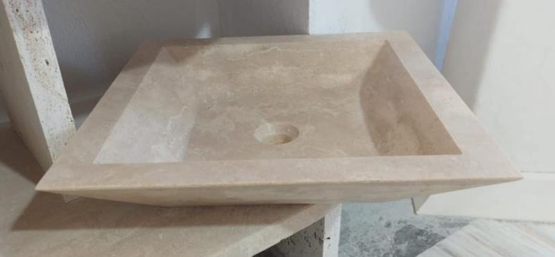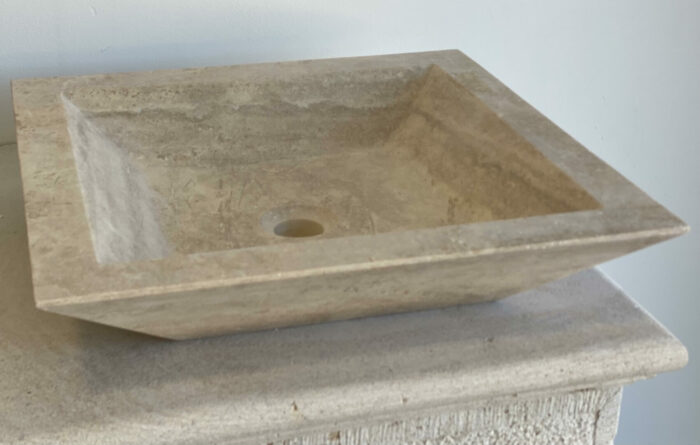 VASQUE SAINT LAURENT TRAVERTIN CLAIR sans trou robinetterie 45 x 45 x 10cm