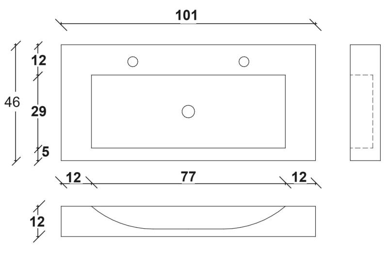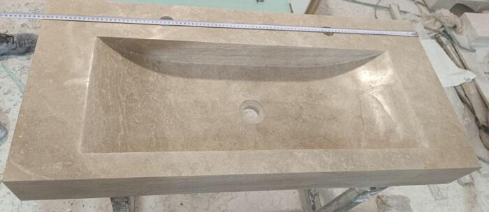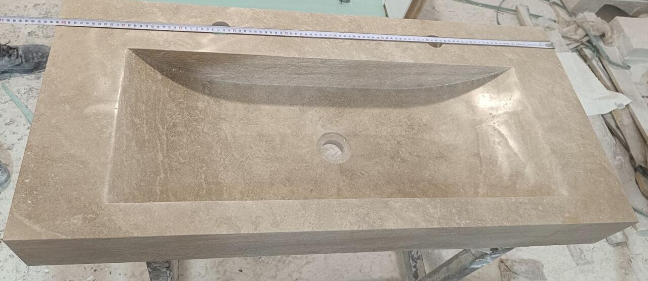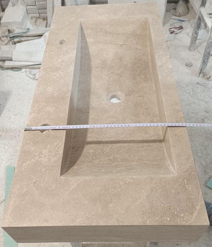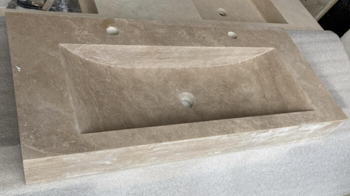 Vasque Starck double robinetterie. En pierre de Travertin < 110 x 50 x 12cm