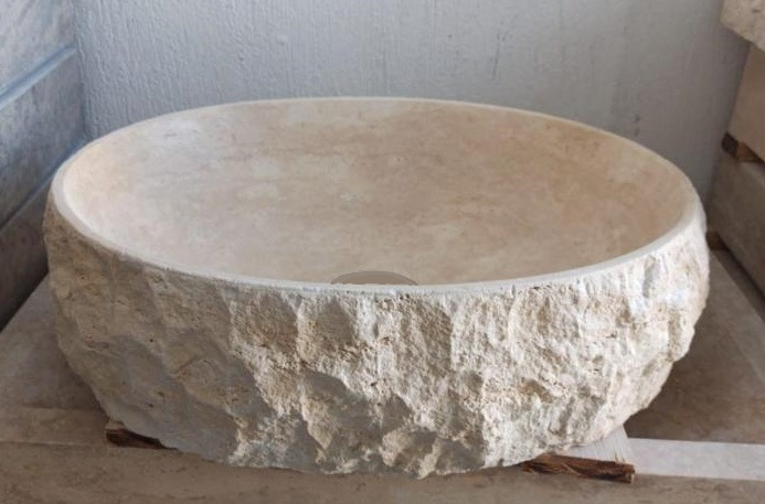 VASQUE TOULOUSE TRAVERTIN CLAIR BORD GALBE ECLATE Ovale 53 x 43 x 15cm