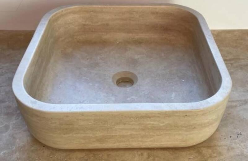 Vasque Travertin Carré 50 x 50cm avec angles arondis, épaisseur 12cm – Prix à la pièce