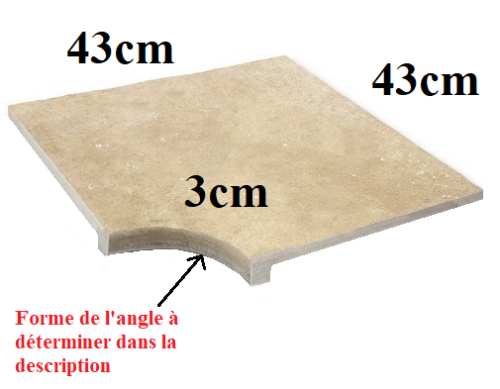 Angle de Margelle de piscine en pierre Travertin < 60x60cm, épaisseur 3cm - Prix à l'unité